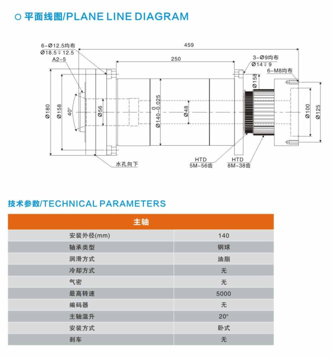 WFJ-140-250-B-T Mechanical spindle for lathe